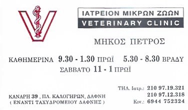 ΜΗΚΟΣ ΠΕΤΡΟΣ ΚΤΗΝΙΑΤΡΟΣ ΔΑΦΝΗ ΑΤΤΙΚΗΣ