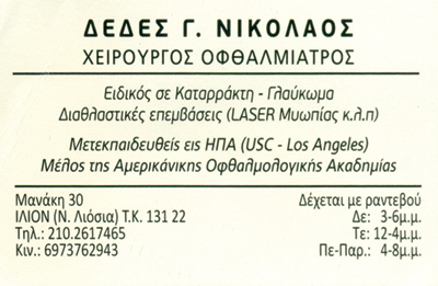 Χειρουργός Οφθαλμίατρος – Δέδες Νικόλαος | Ίλιον Αττικής